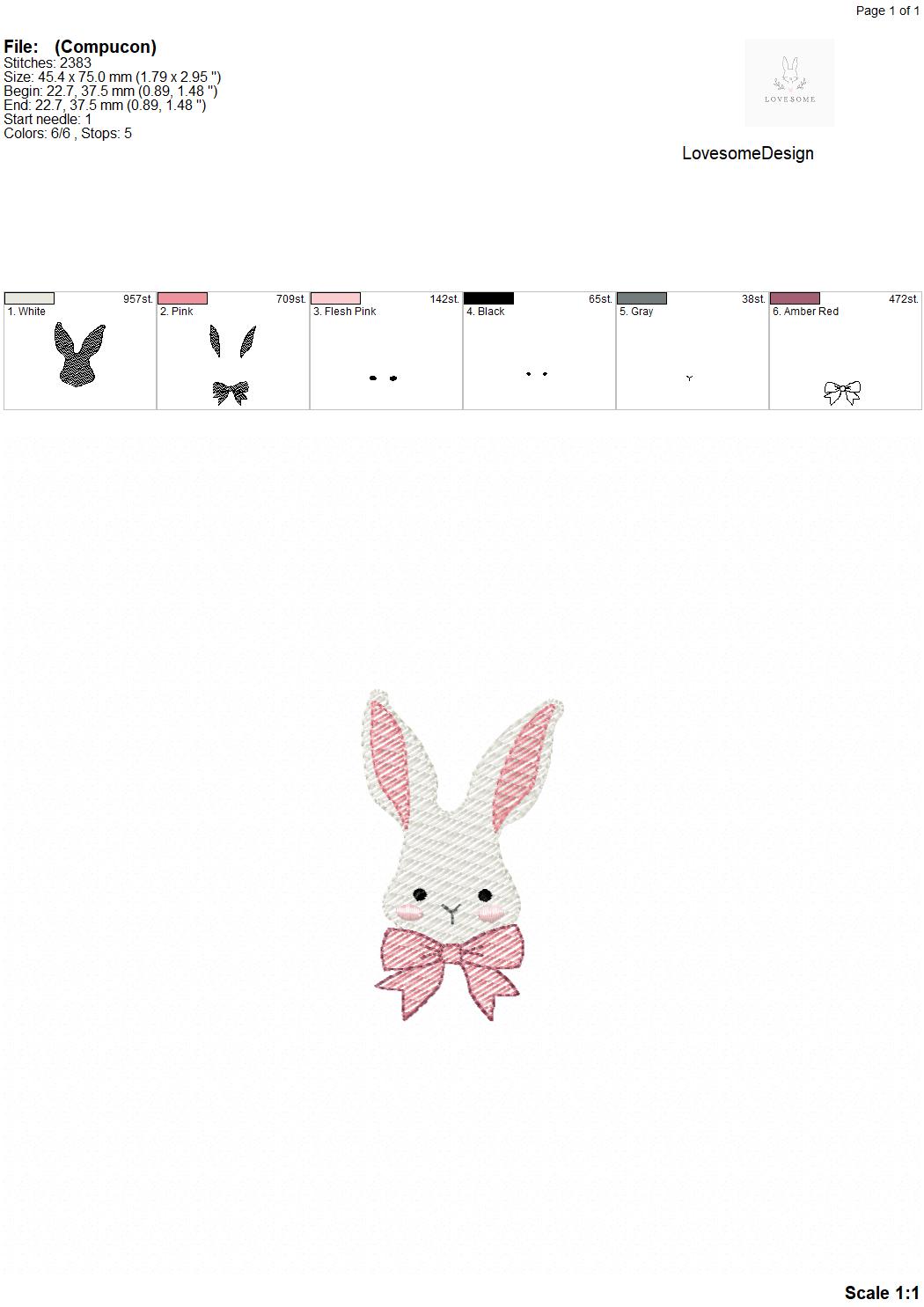 Bunny with Bow Quick Stitch 3inch Machine Embroidery Design Digital Download | Lovesome Design