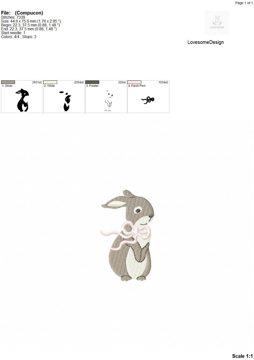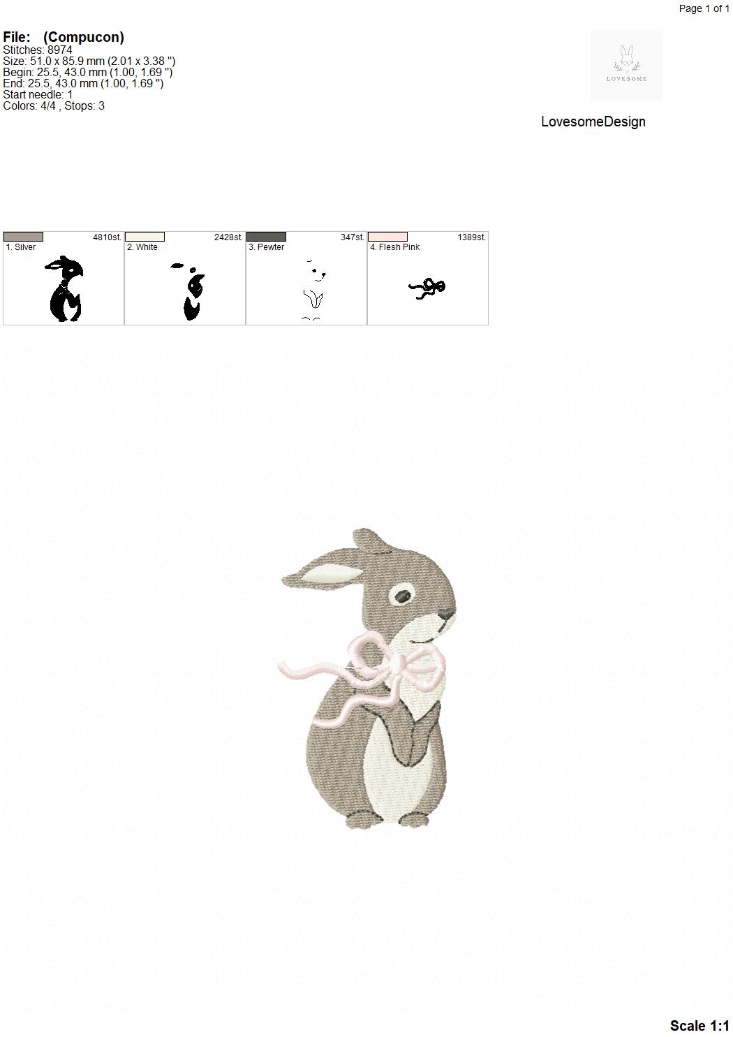 Cute Rabbit with Bow 3inch 3.5inch Machine Embroidery Design Spring Embroidery File Digital Download | Lovesome Design