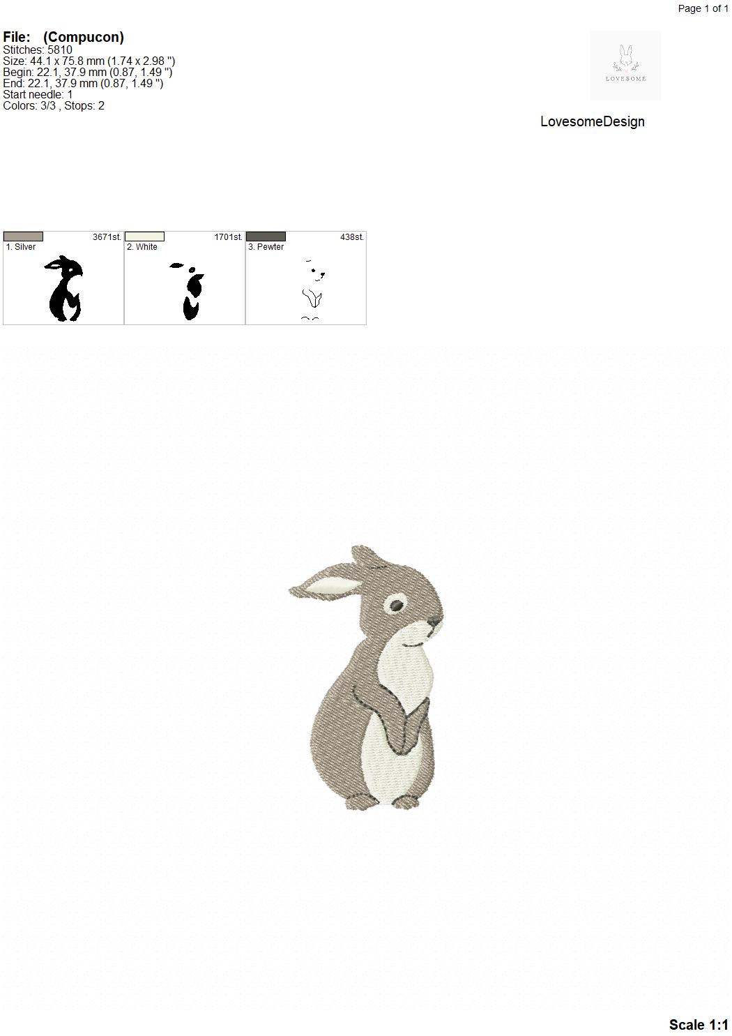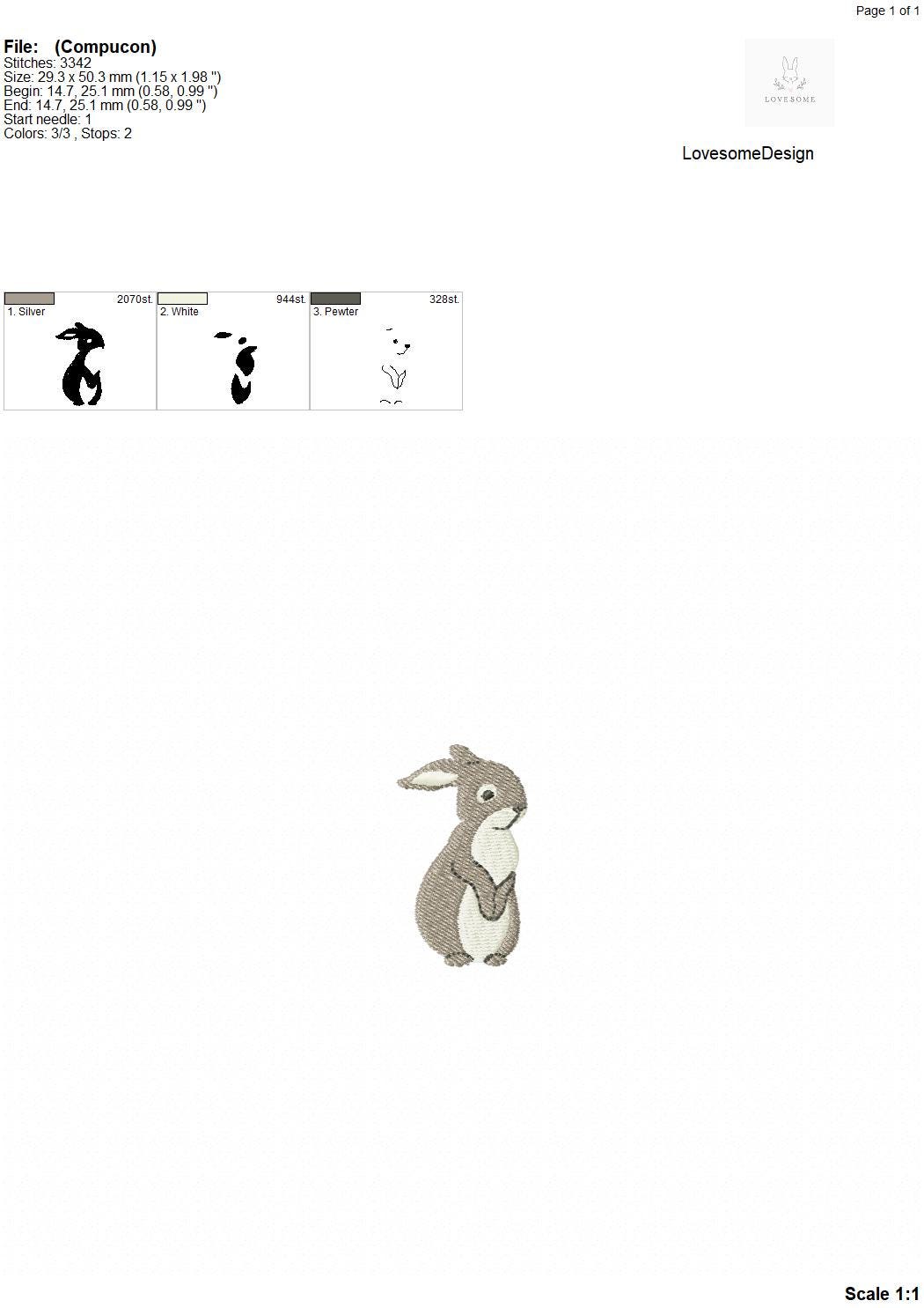 This listing features a machine embroidery file of a cute rabbit design in two sizes, one in 2inch and one in 3inch.