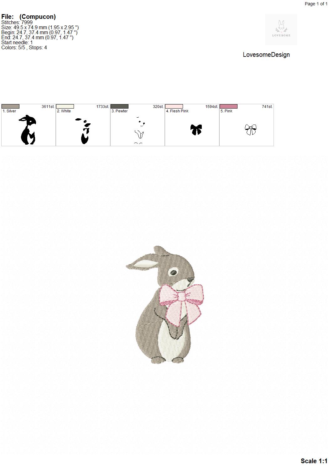 Cute Rabbit with Big Bow 3inch 3.5inch Machine Embroidery Design Spring Embroidery File Digital Download | Lovesome Design
