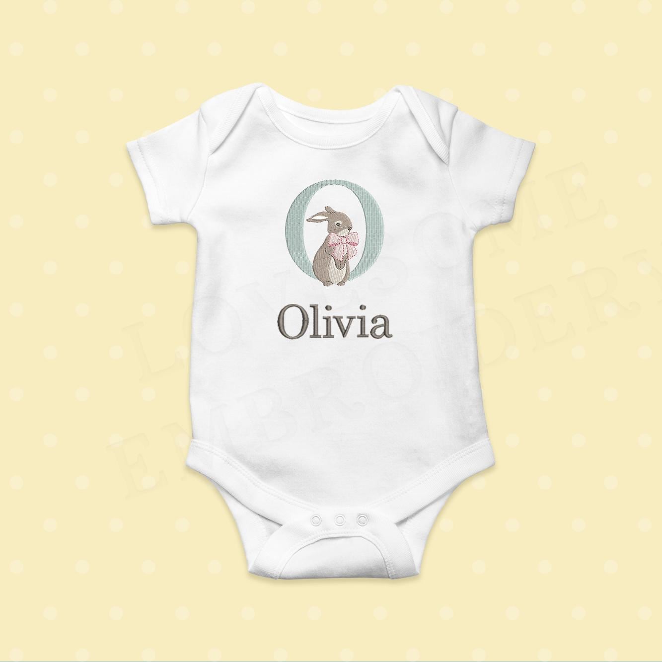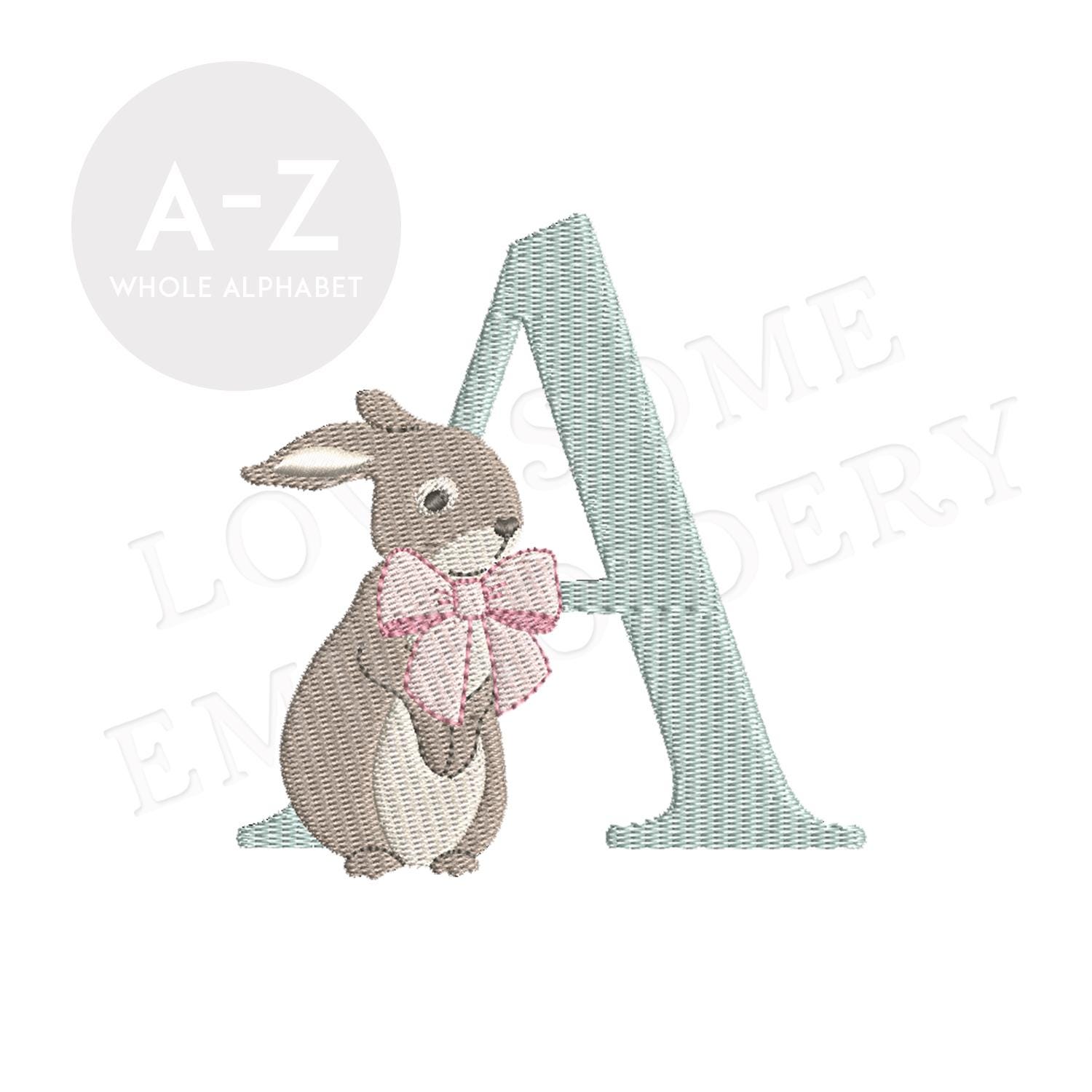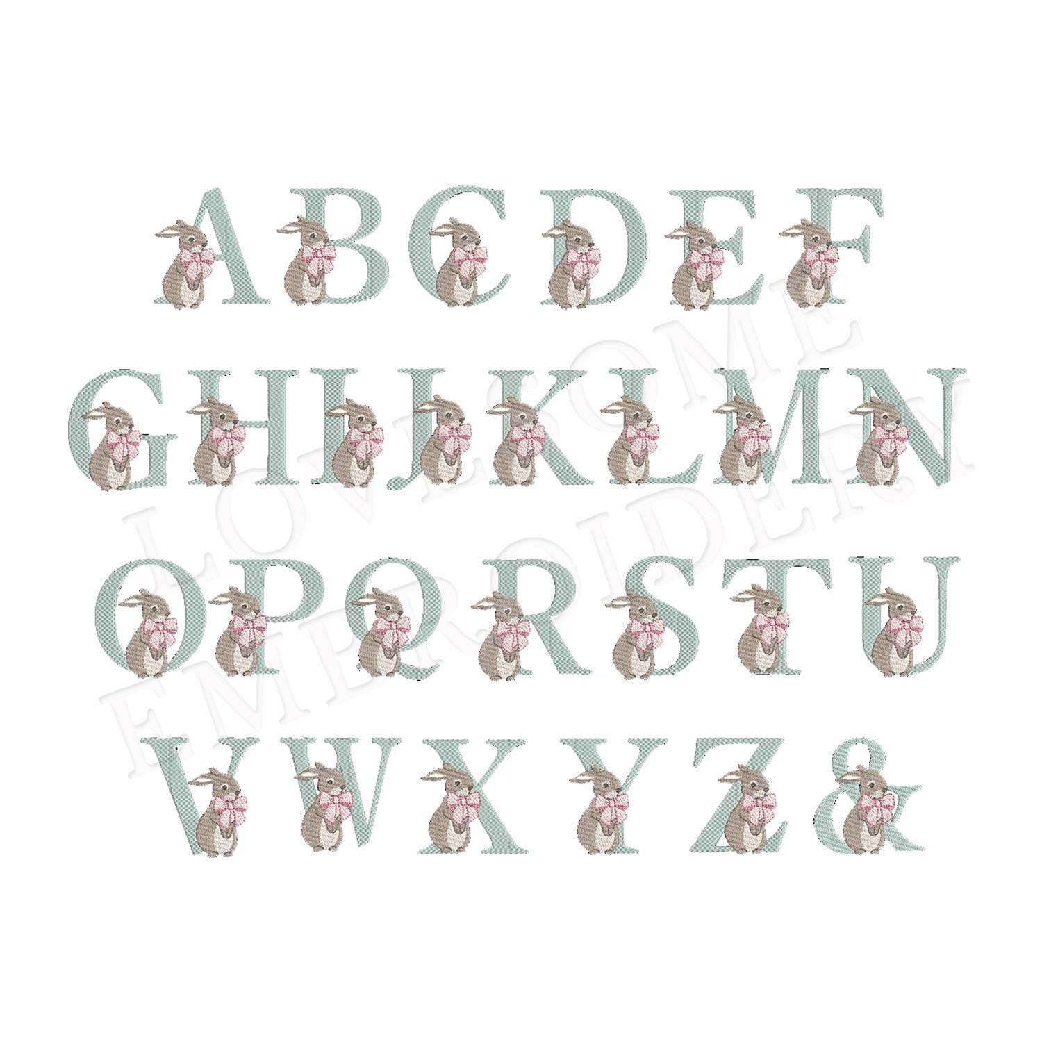 Rabbit Big Bow 4inch Alphabet A-Z Machine Embroidery Font Digital Download | Lovesome Design