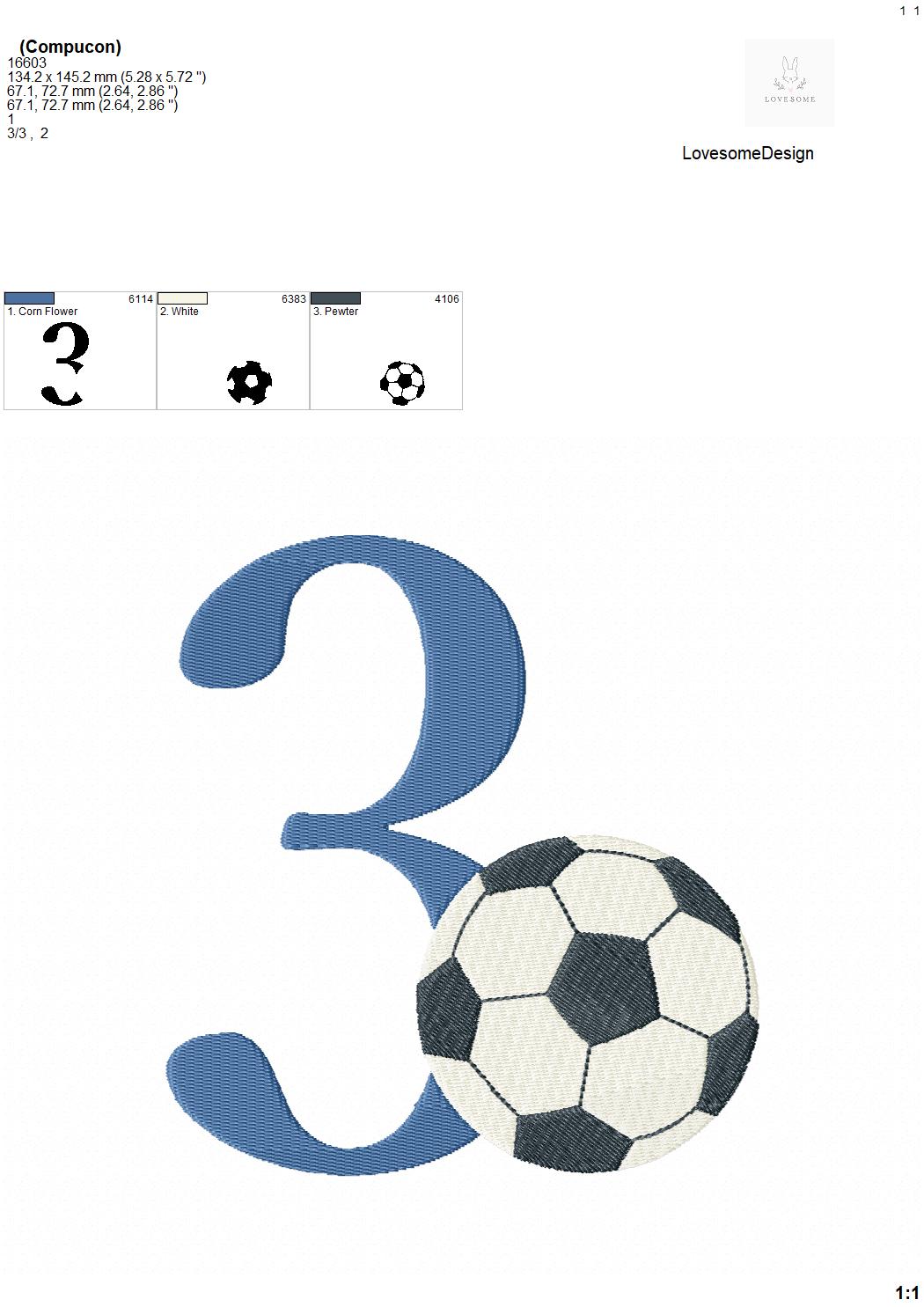 This listing features a machine embroidery numbers set which includes embroidery files of 10 numbers 0-9 with a soccer ball design in 6inch size. (For the whole set, pls see the listing images.)