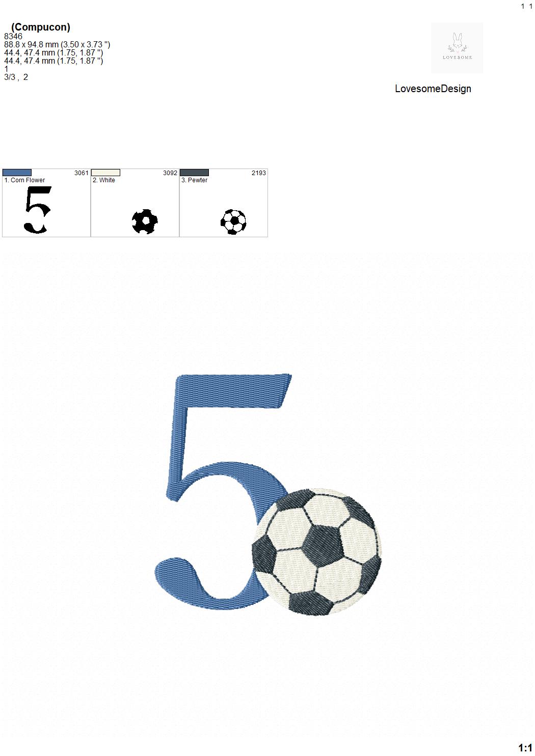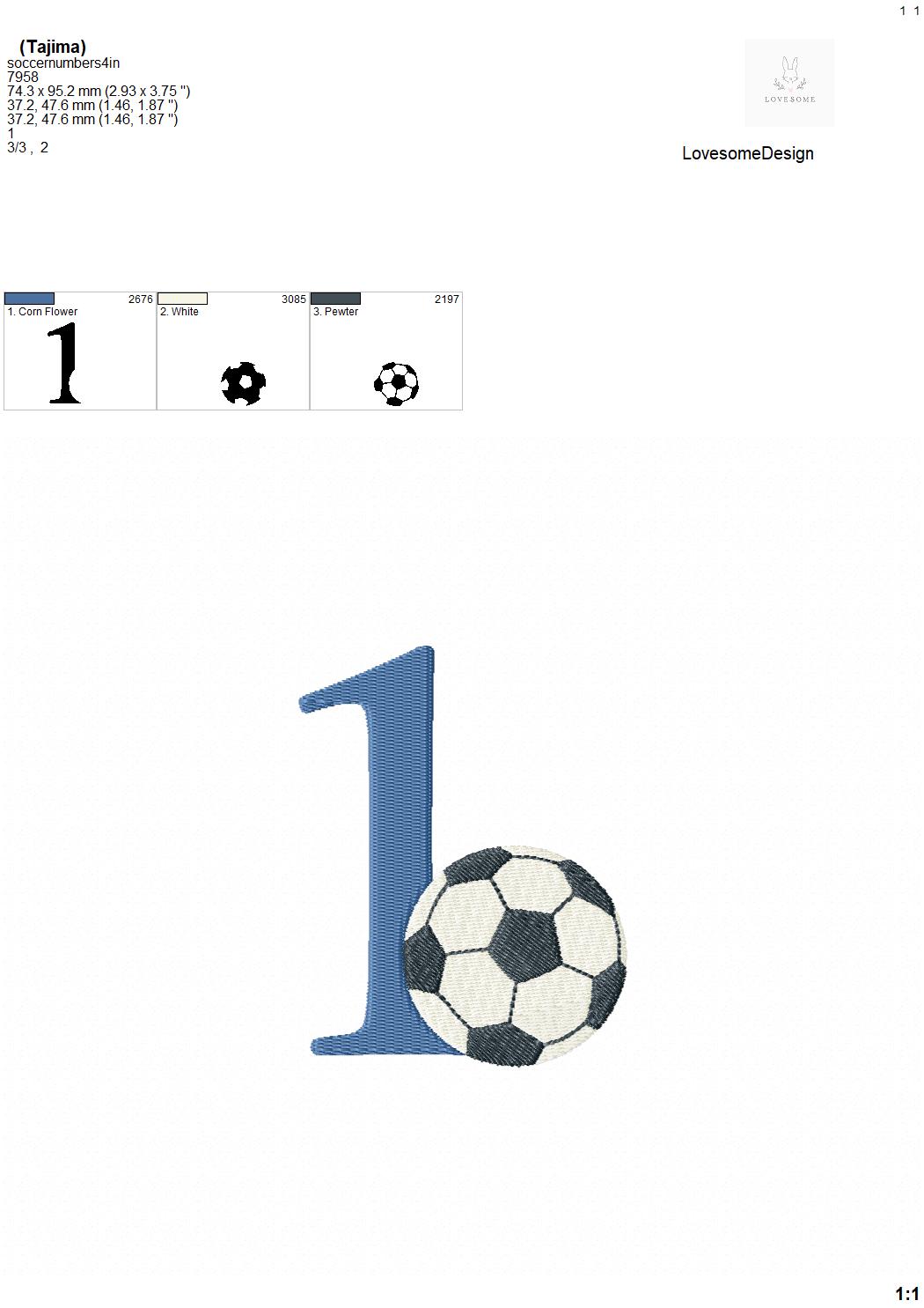 Soccer Ball 4inch Numbers 0-9 Football Embroidery Numbers, Sports Machine Embroidery Digital File | Lovesome Design