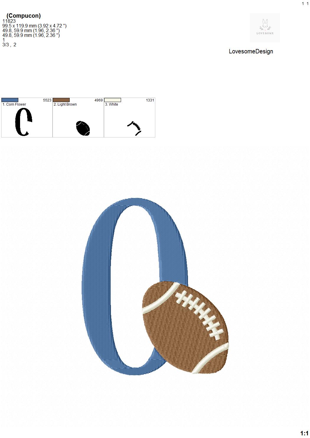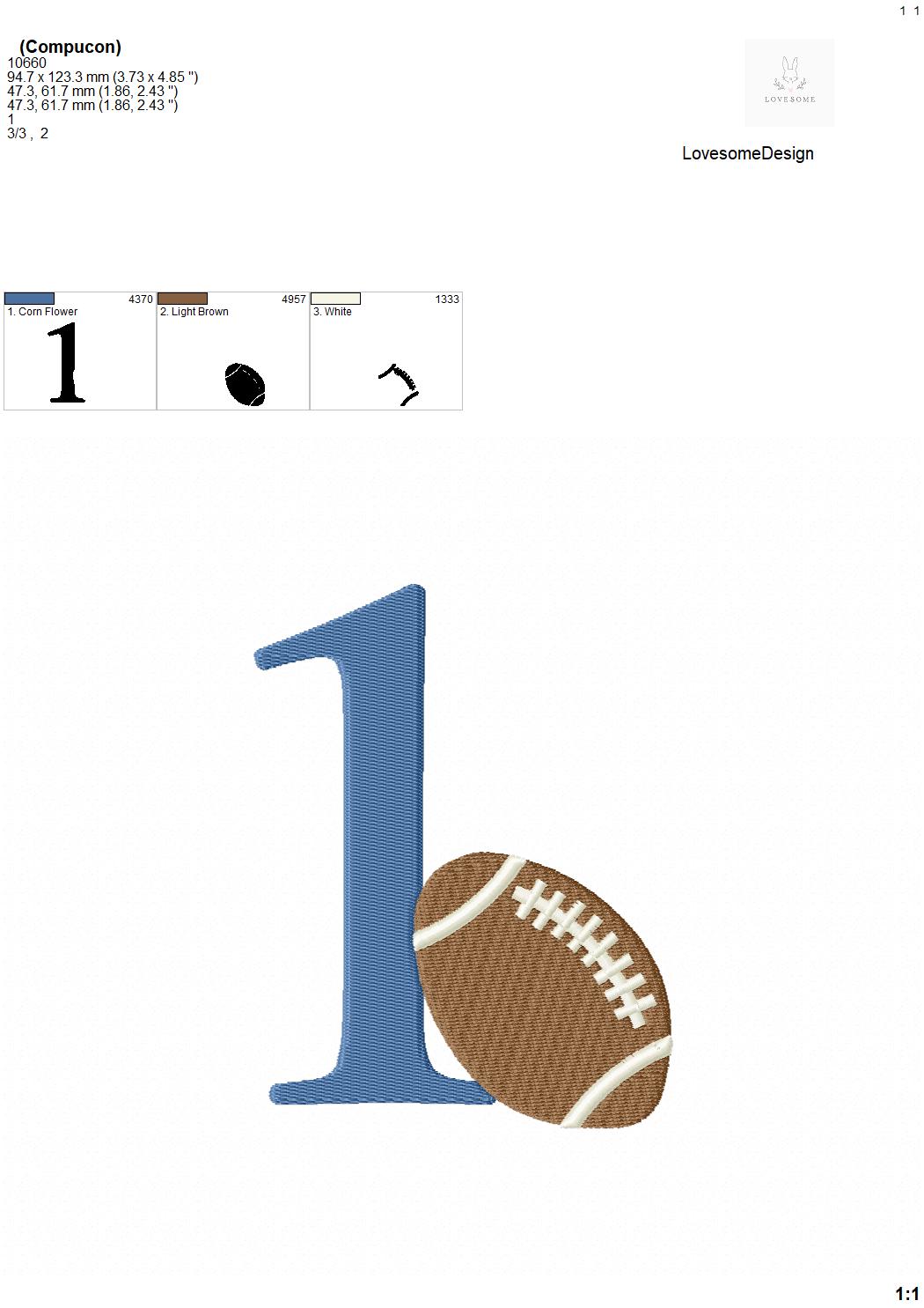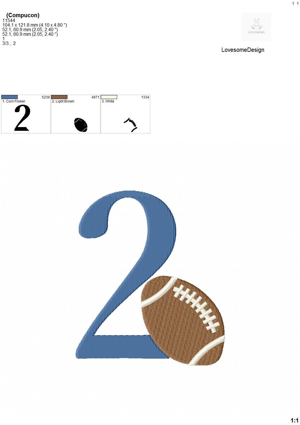 This listing features a machine embroidery numbers set which includes embroidery files of 10 numbers 0-9 with an american football design in 5inch size. (For the whole set, pls see the listing images.)