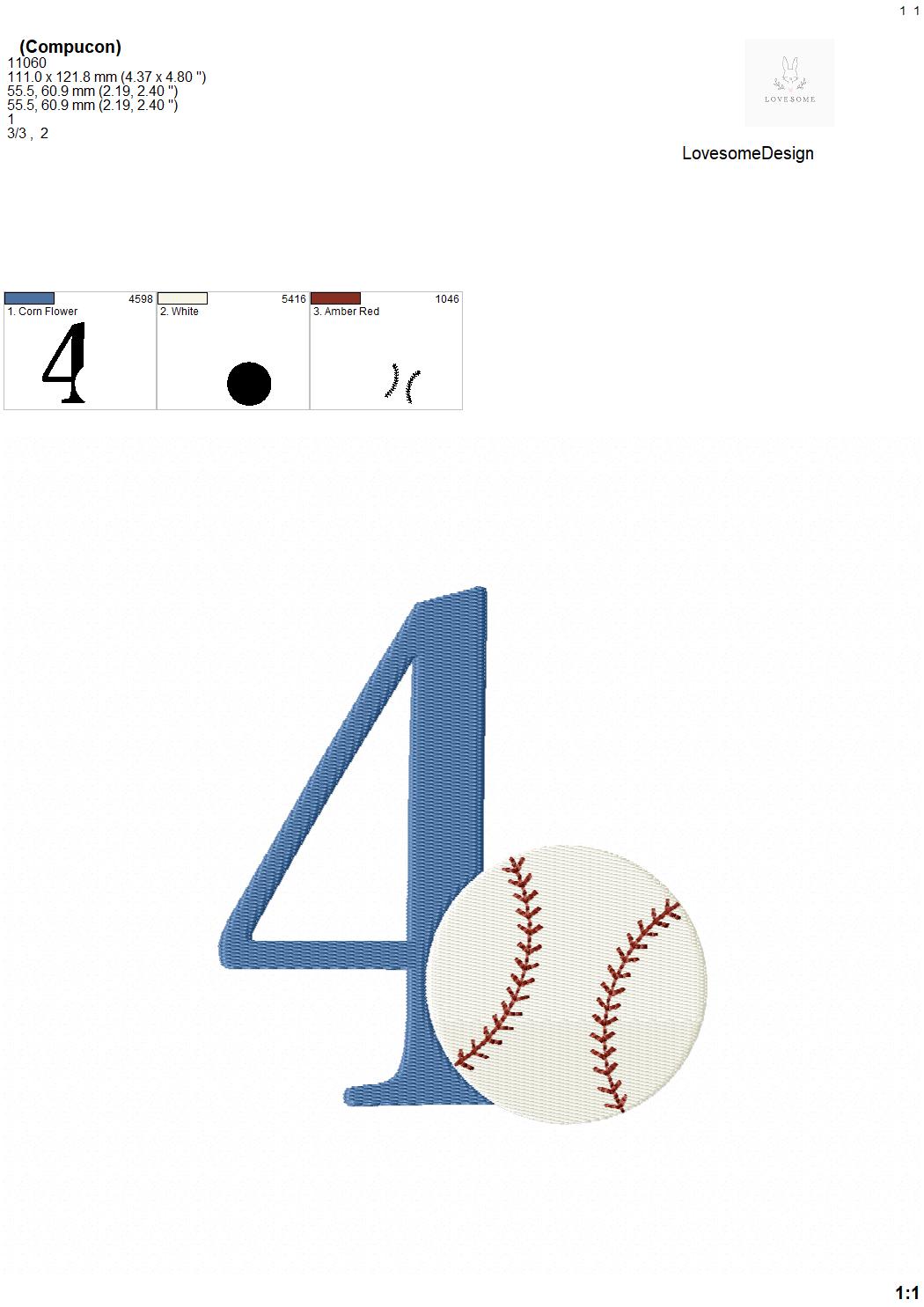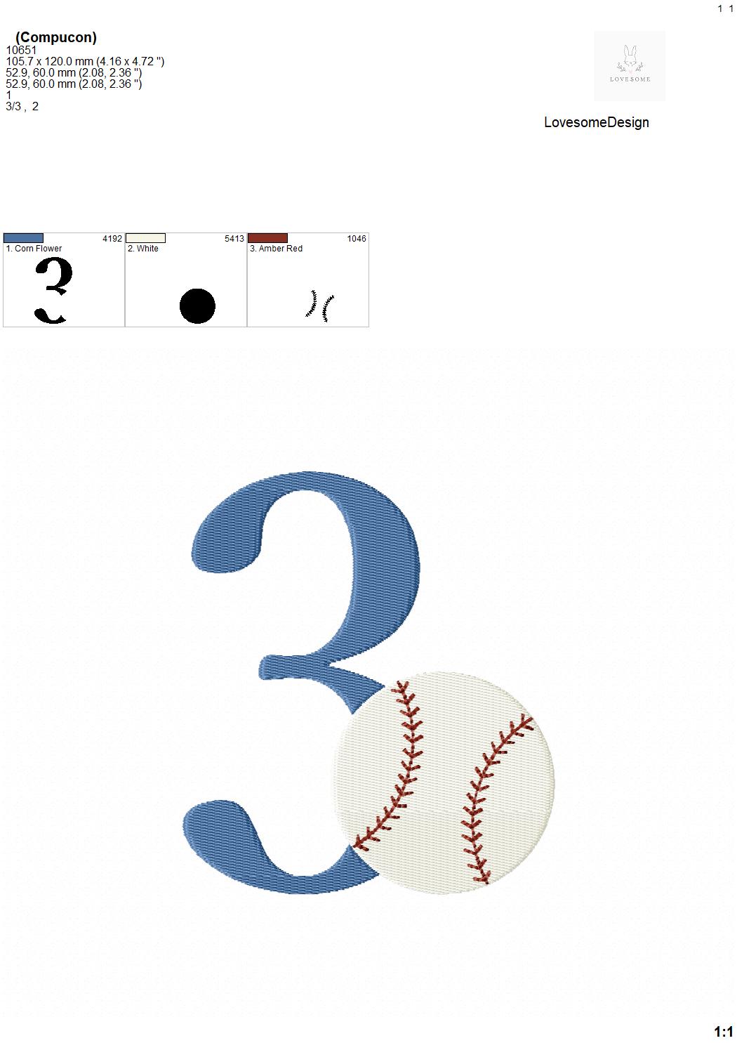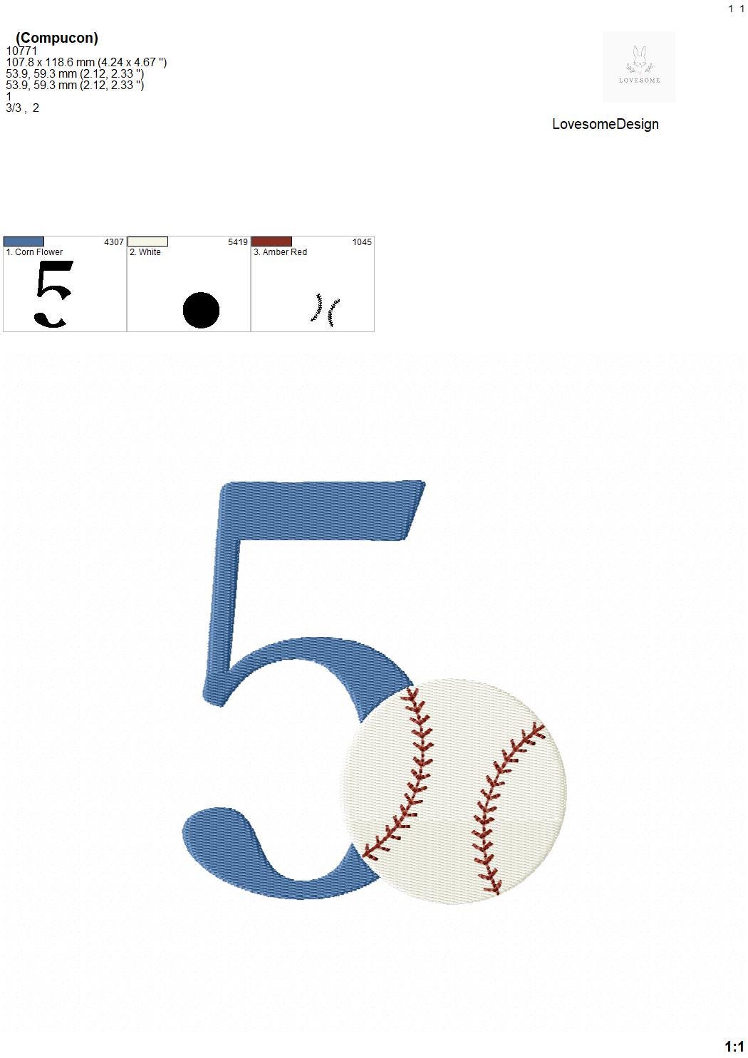 This listing features a machine embroidery numbers set which includes embroidery files of 10 numbers 0-9 with a baseball design in 5inch size. (For the whole set, pls see the listing images.)