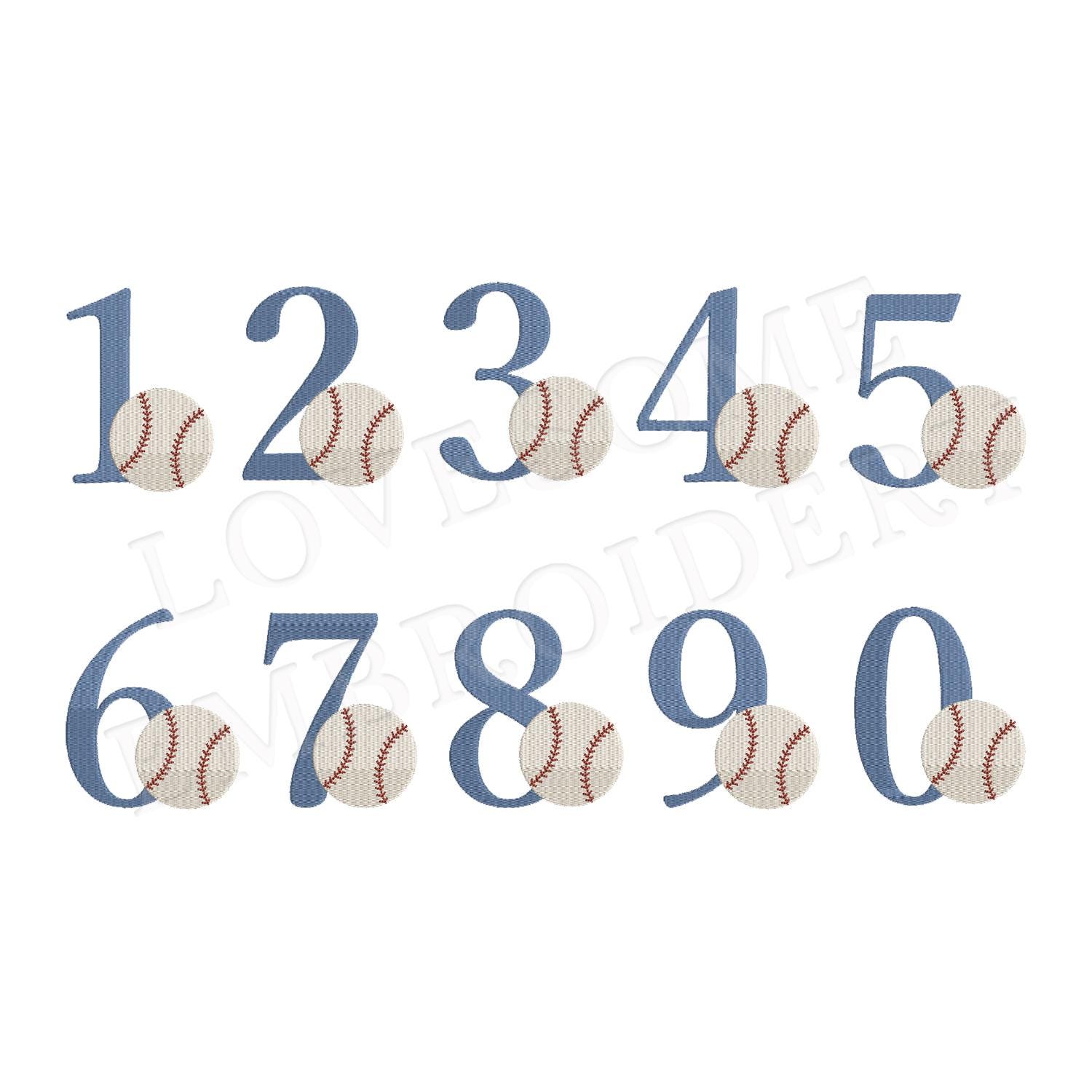 Baseball 4inch Numbers 0-9 Baseball Embroidery Numbers, Sports Machine Embroidery Digital File | Lovesome Design