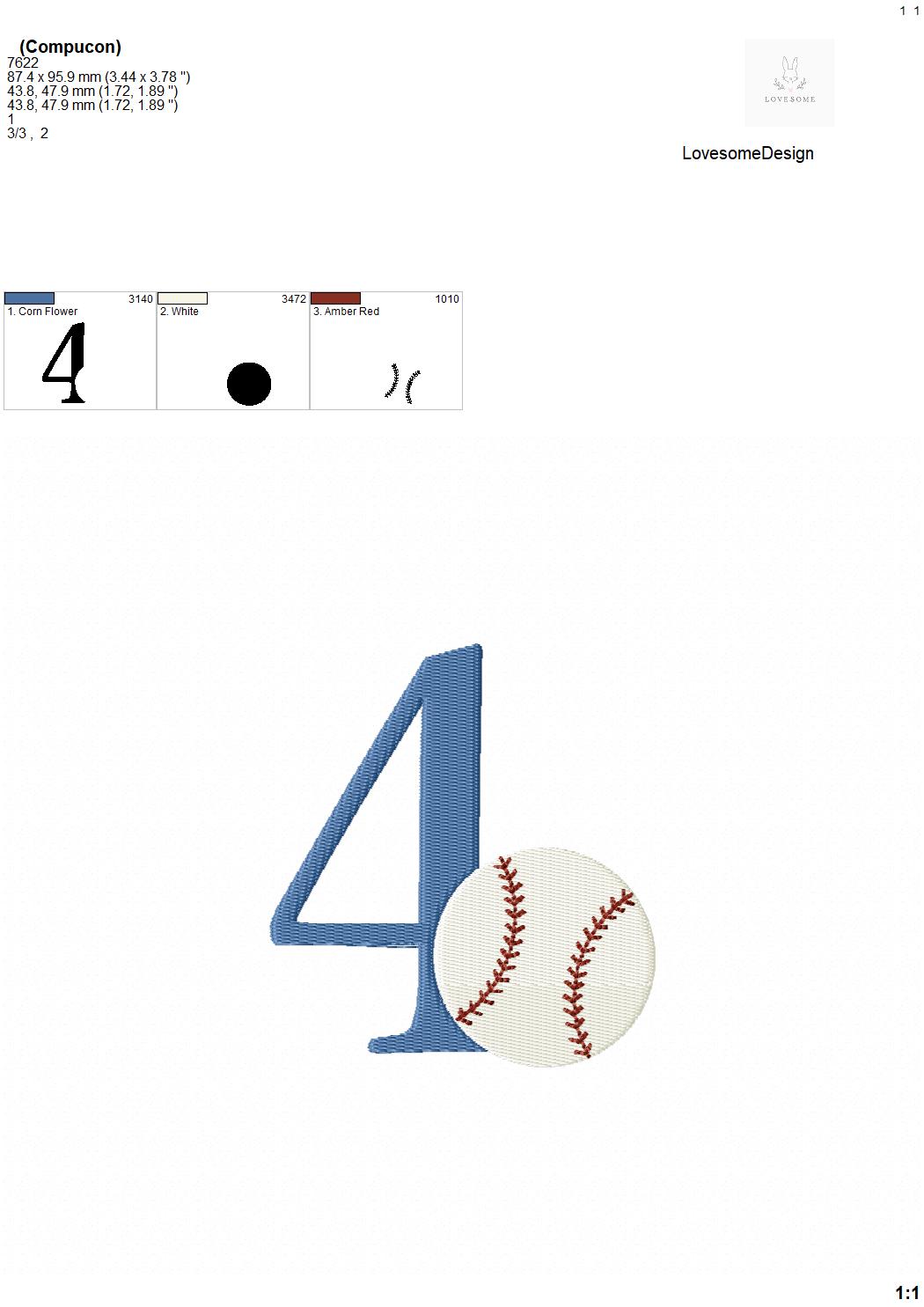 This listing features a machine embroidery numbers set which includes embroidery files of 10 numbers 0-9 with a baseball design in 4inch size. (For the whole set, pls see the listing images.)