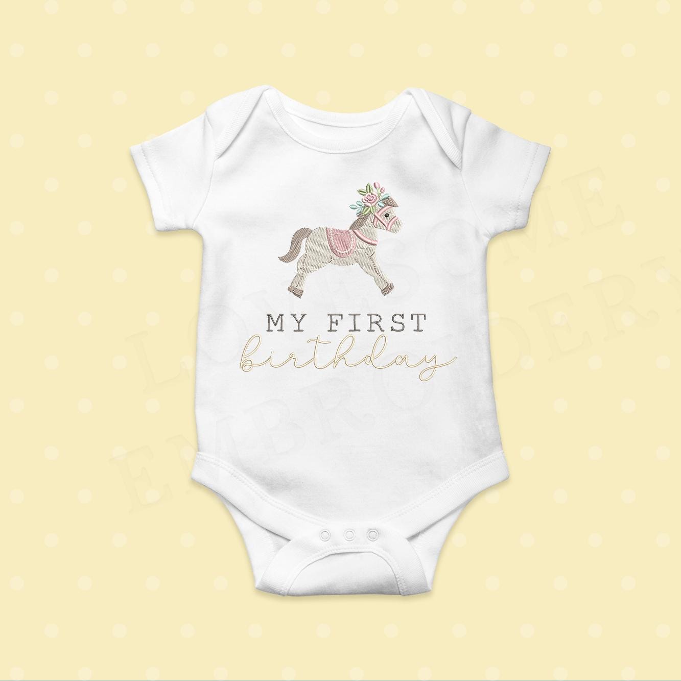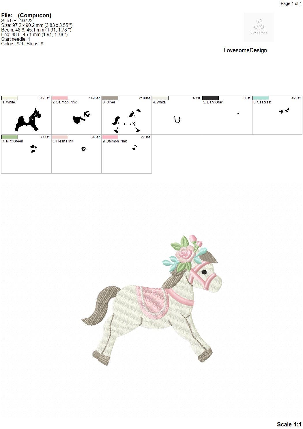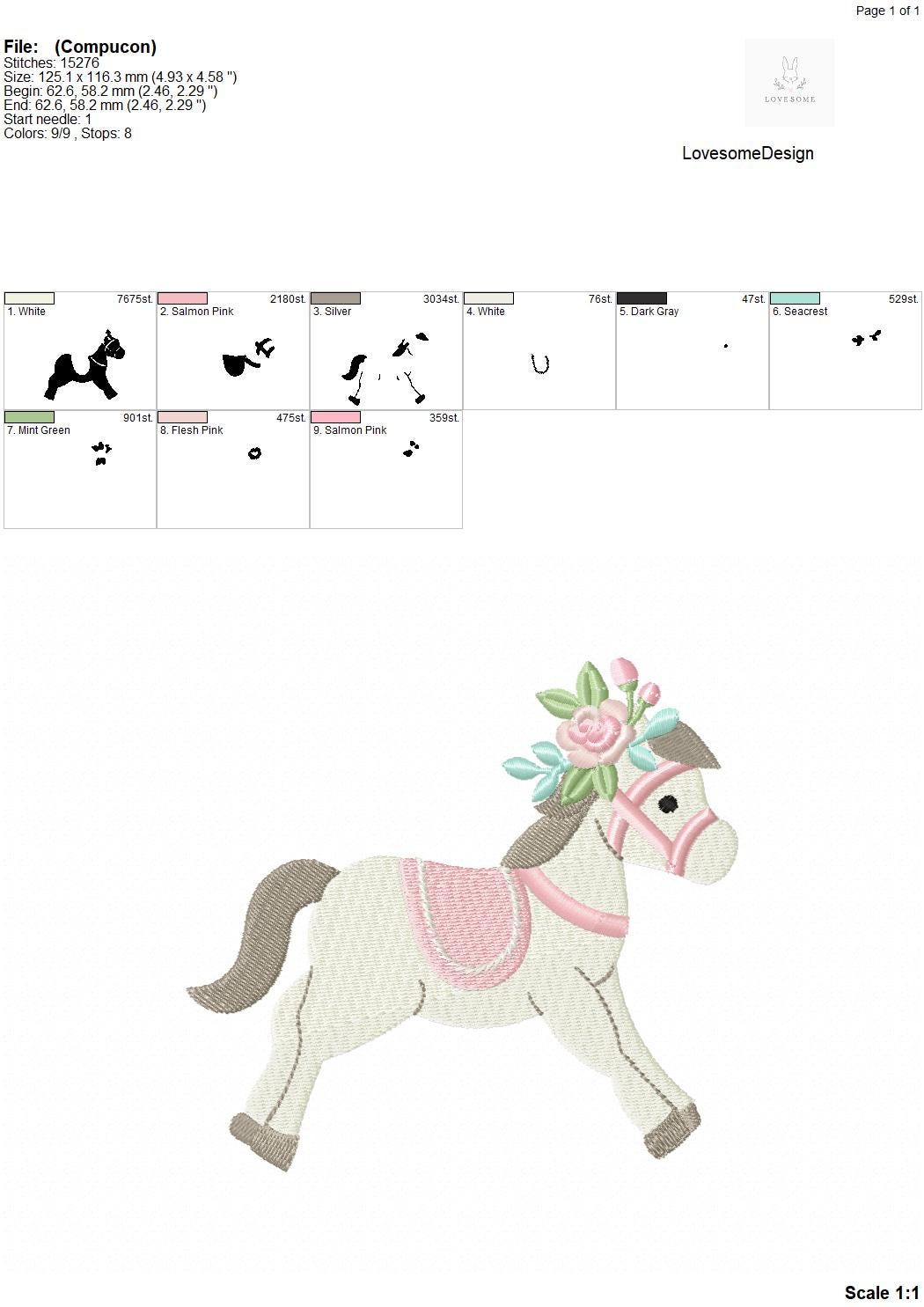 Floral Horse 4inch 5inch Machine Embroidery Design, Baby Newborn Embroidery File | Lovesome Design