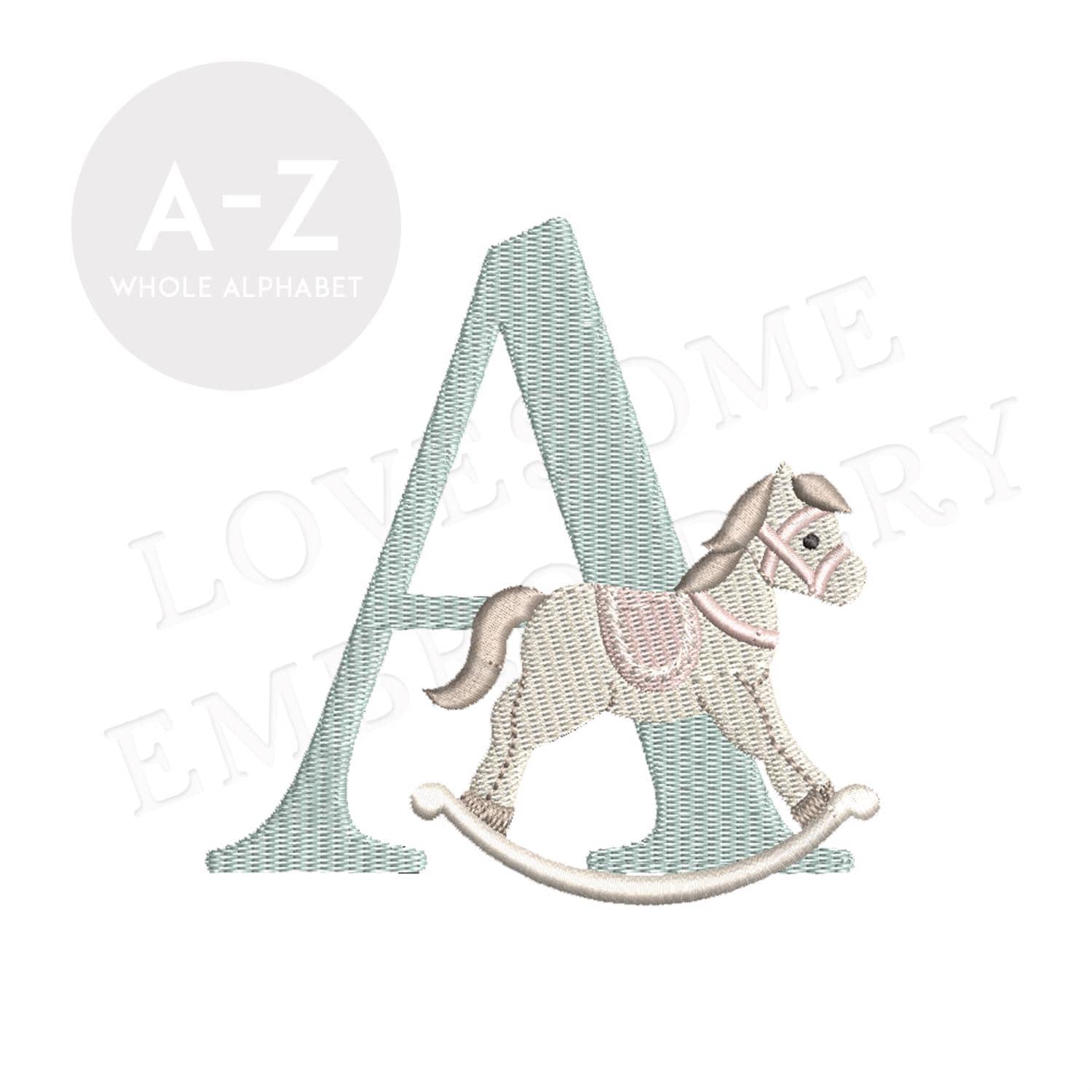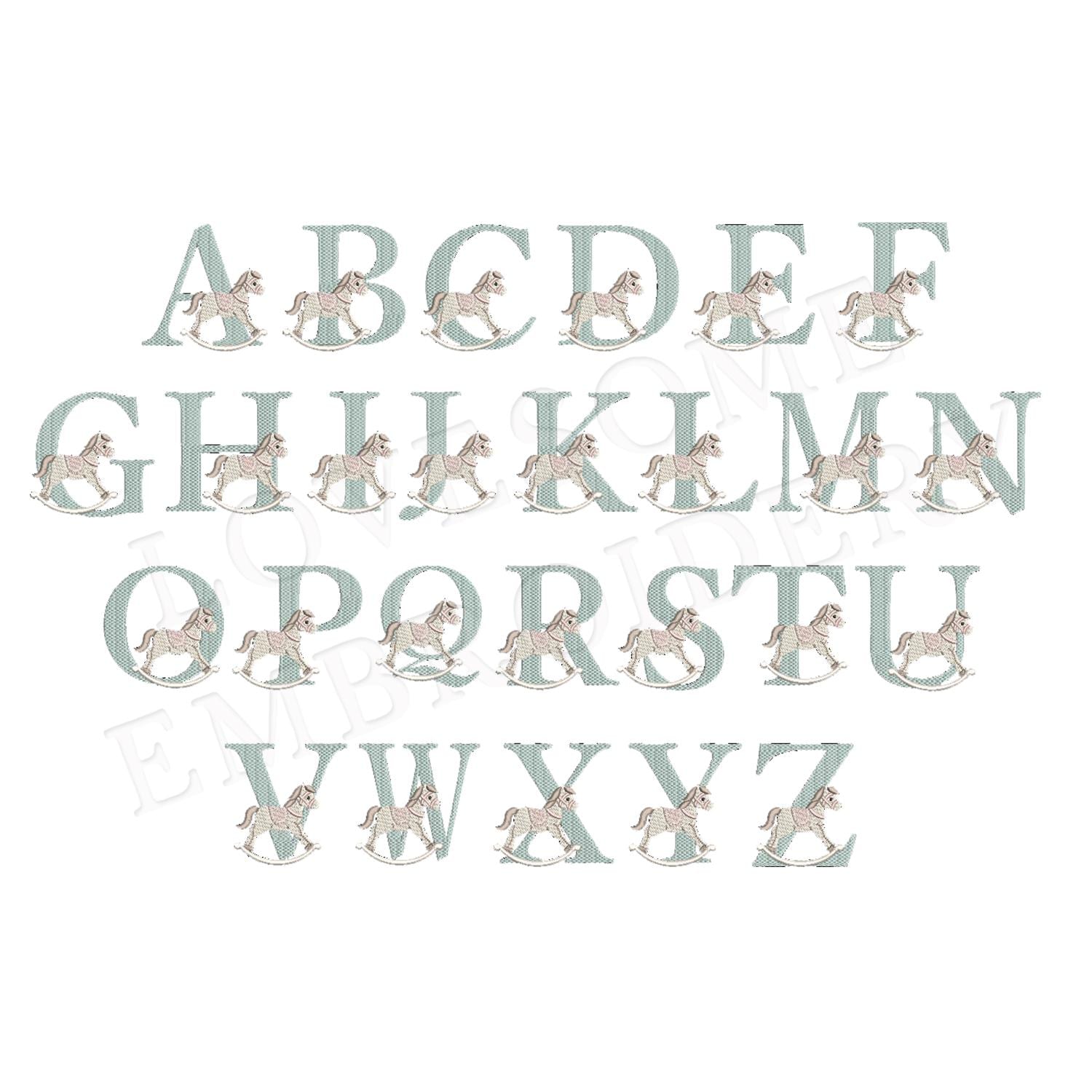 Rocking Horse 3inch Monogram Alphabet A-Z Machine Embroidery Font Digital Download | Lovesome Design
