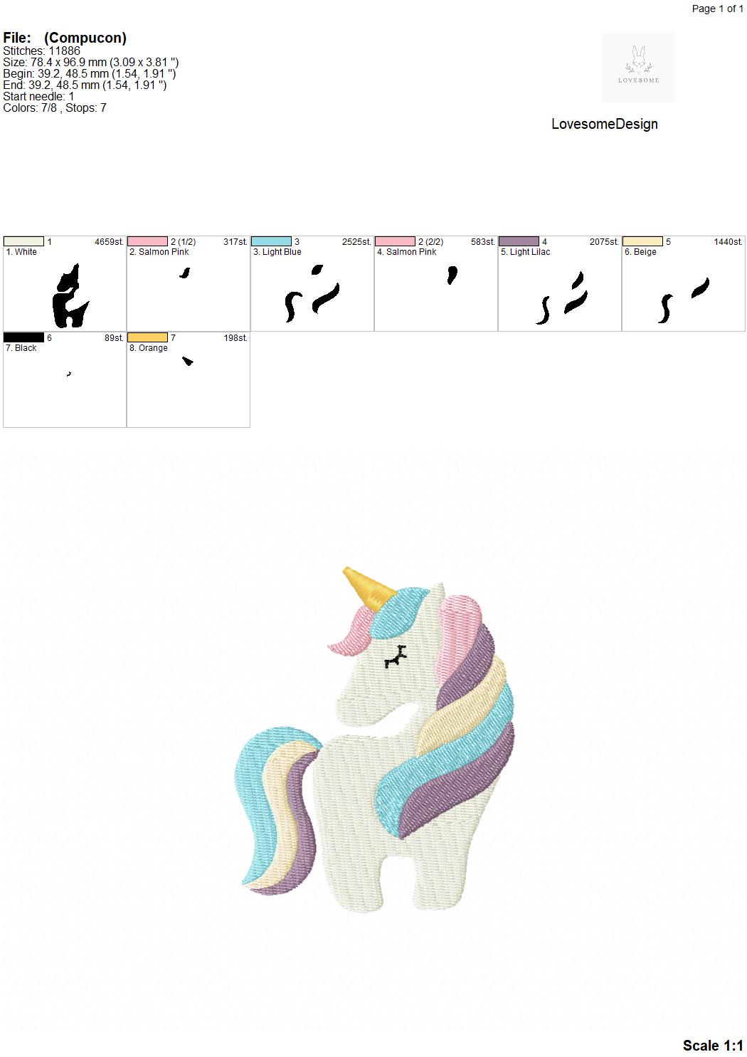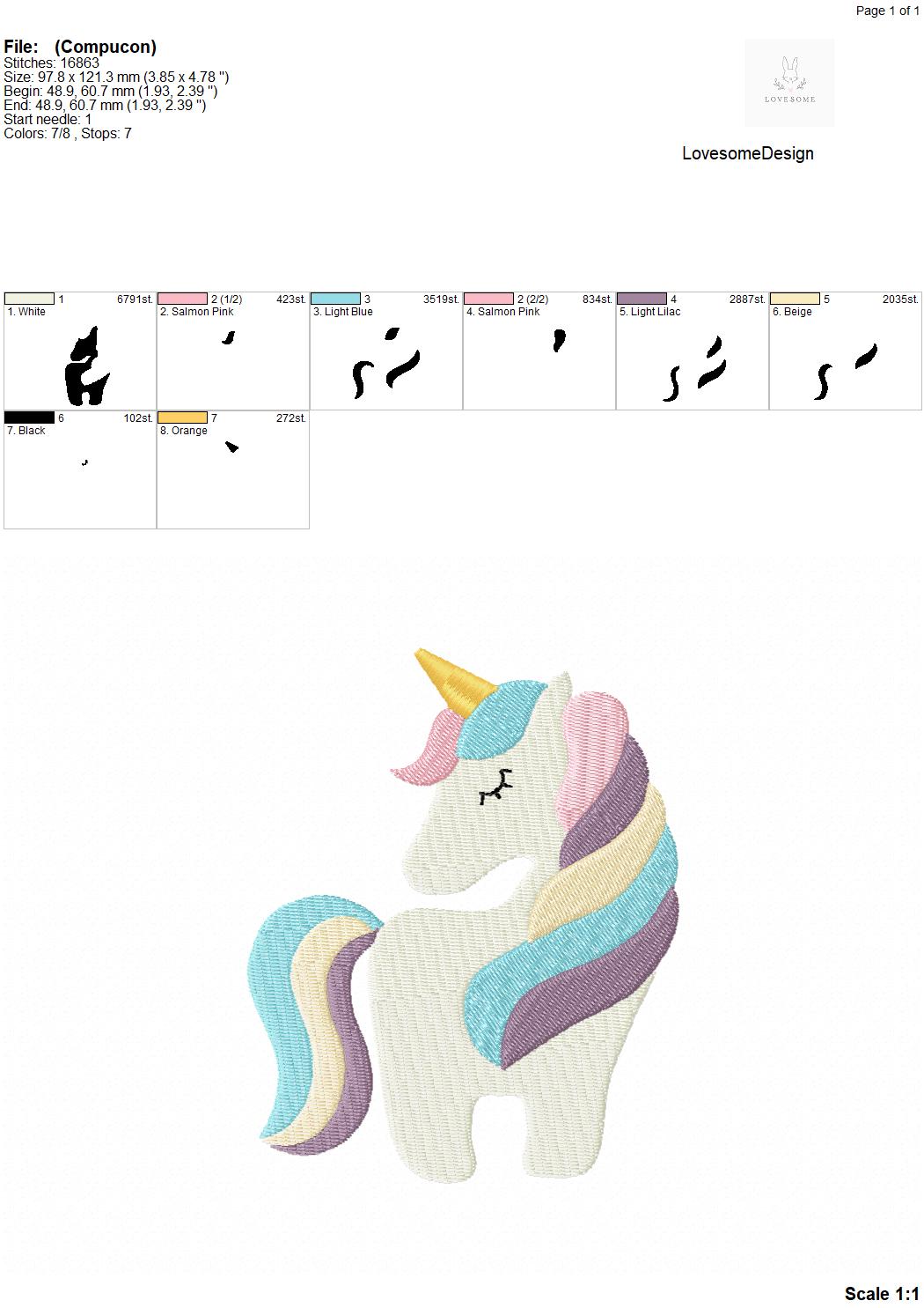 This listing includes one cute unicorn design for machine embroidery in two big sizes, appr. in 5inch and 4inch sizes.