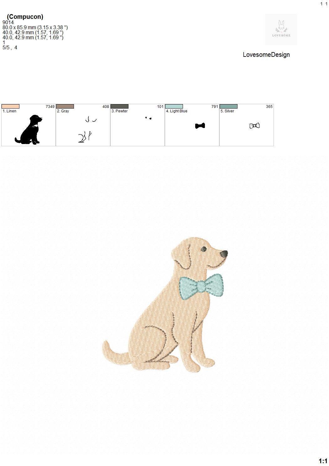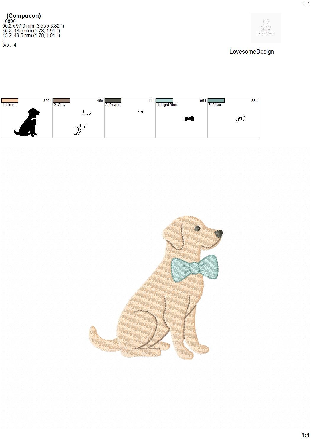 Golden Retriever 3.5inch 4inch with Bow Tie Machine Embroidery Design, Lovely Labrador Cute Dog Embroidery File | Lovesome Design