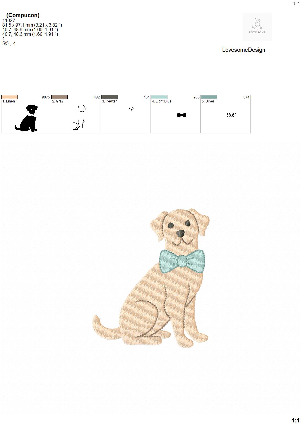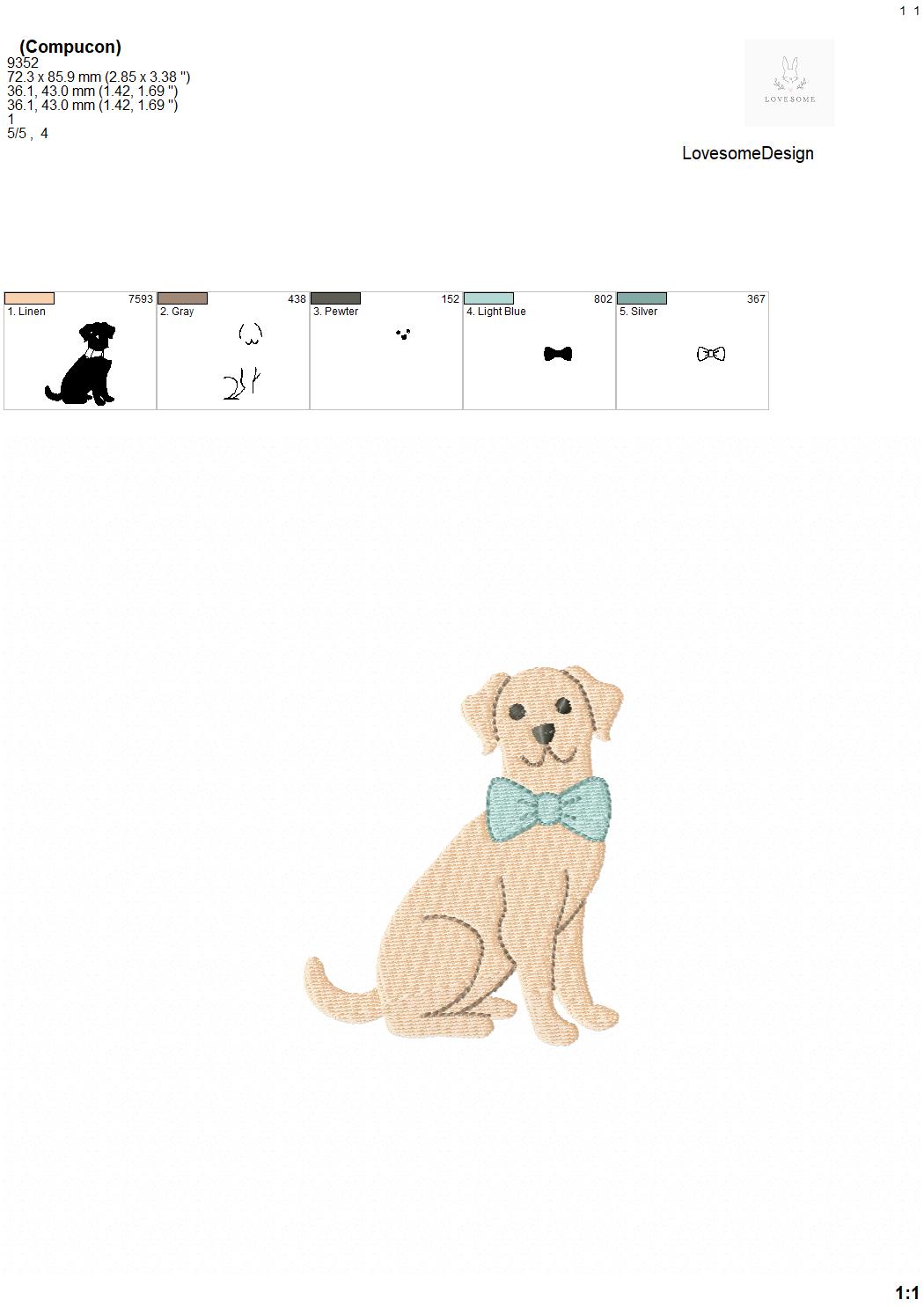 Golden Retriever 3.5inch 4inch Bow Tie Dog Machine Embroidery Design, Lovely Labrador Cute Dog Embroidery File | Lovesome Design